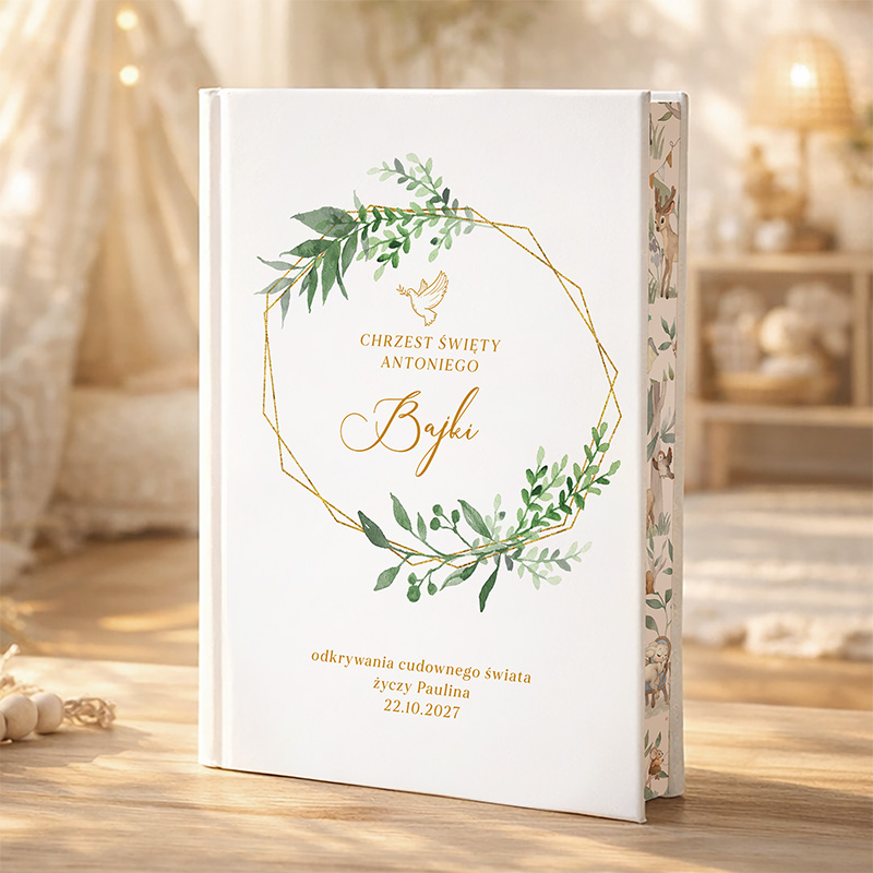 Personalizowana książka z bajkami to oryginalny prezent na Chrzest dziecka, który zachwyca elegancją i treścią. Zawiera imię, datę oraz dedykację, a w środku aż 40 mądrych, ciepłych historii idealnych do wspólnego czytania.