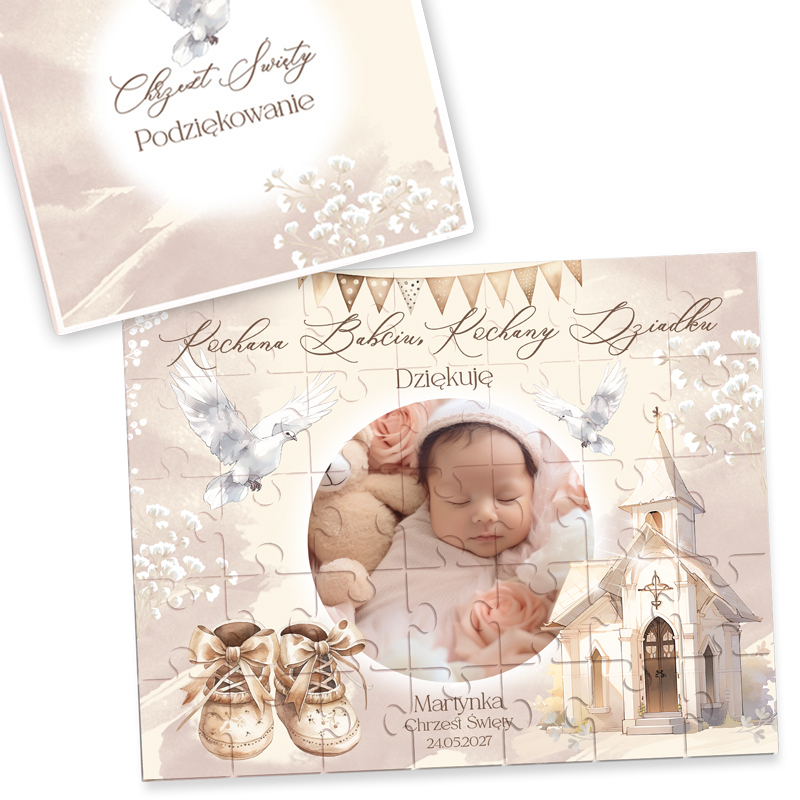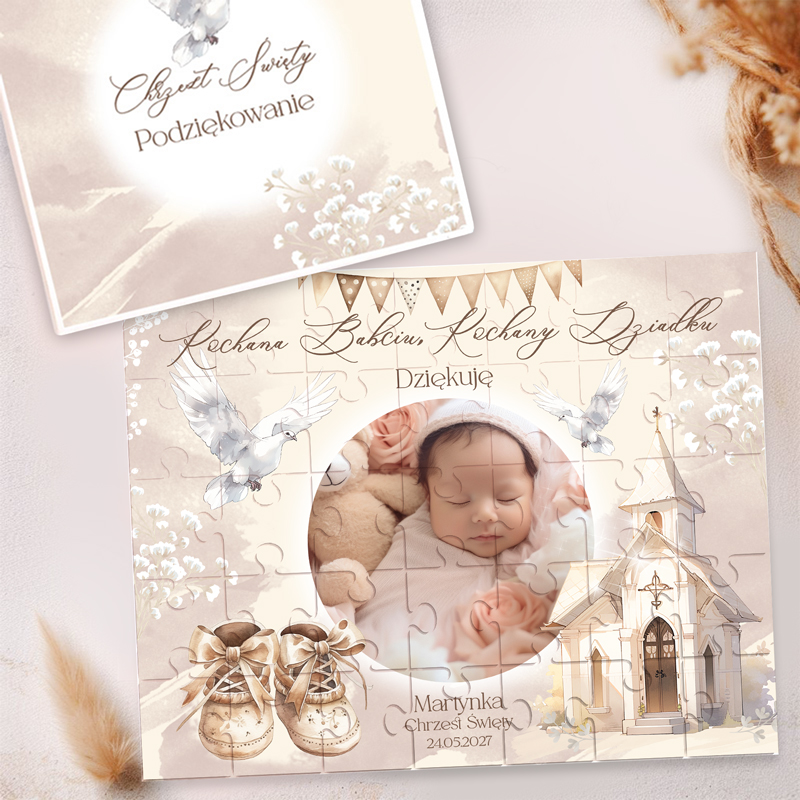 Chrzest Święty to wyjątkowa chwila, którą warto upamiętnić w piękny sposób. Puzzle podziękowanie dla dziadków na Chrzest Św. to wzruszający prezent, który podkreśli wdzięczność i miłość wnuczka.