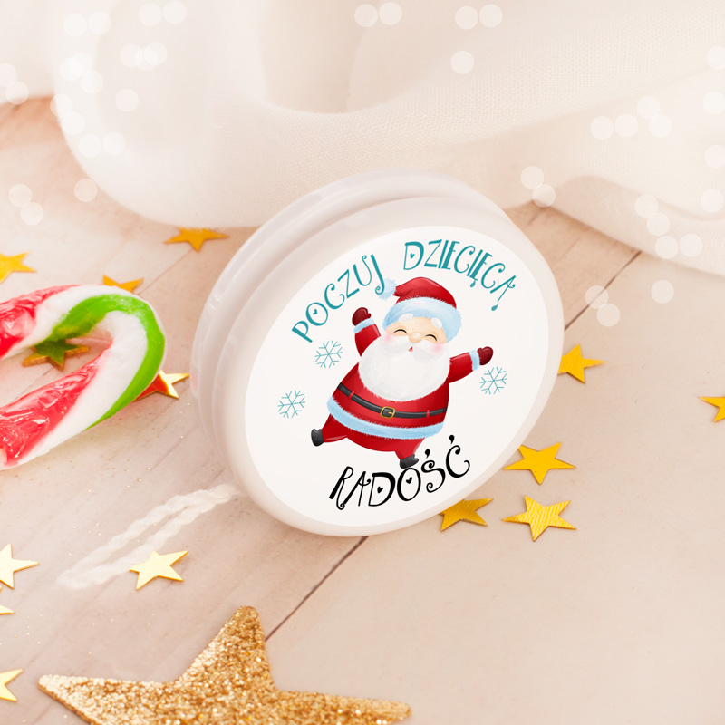 Kolorowe jojo z motywem Mikołaja to drobny świąteczny prezent dla dziecka i rodziny na Wigilii, który wywoła uśmiech i odrobinę nostalgii. W komplecie z naklejkami z napisem „Poczuj dziecięcą radość”, świetnie sprawdzi się jako upominek mikołajkowy do przedszkola, szkoły lub na firmowe paczki świąteczne. Idealny drobiazg do woreczka lub pudełka prezentowego.
