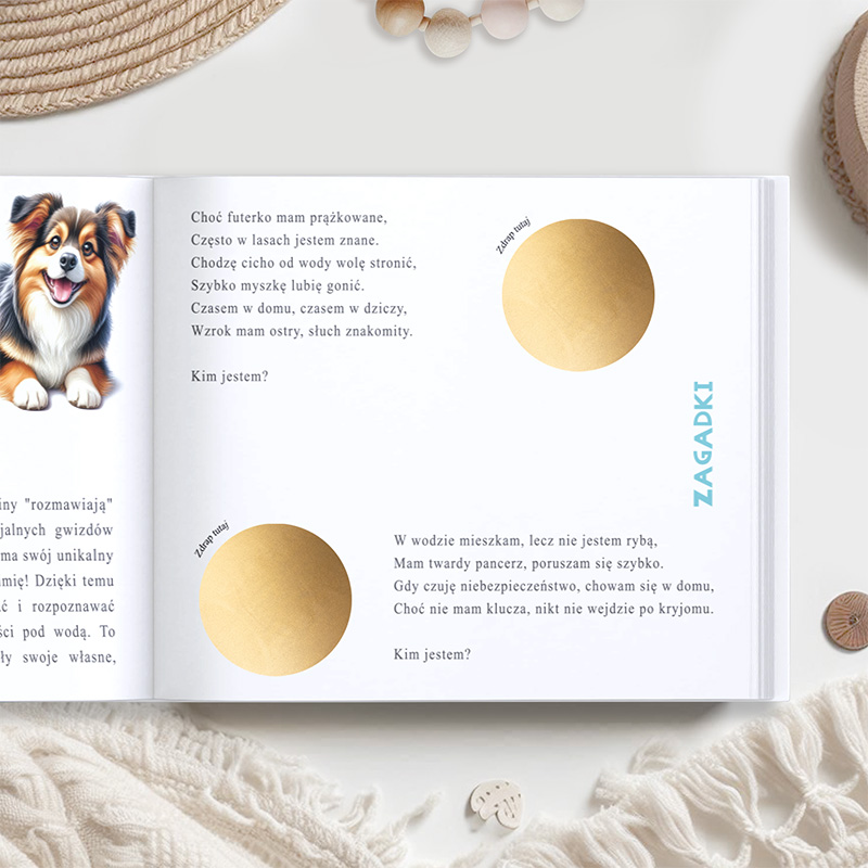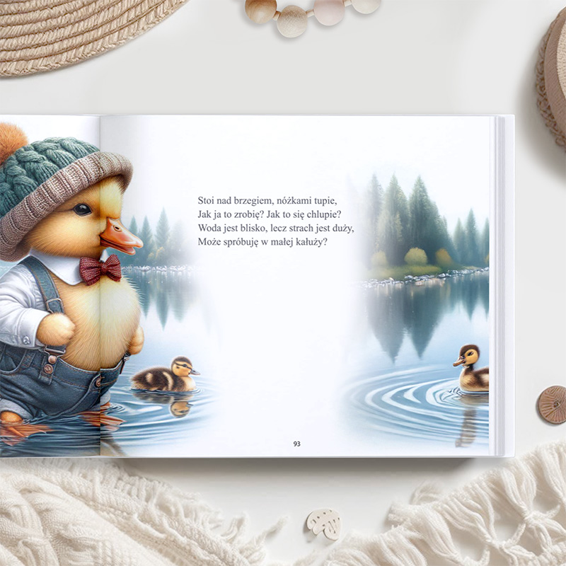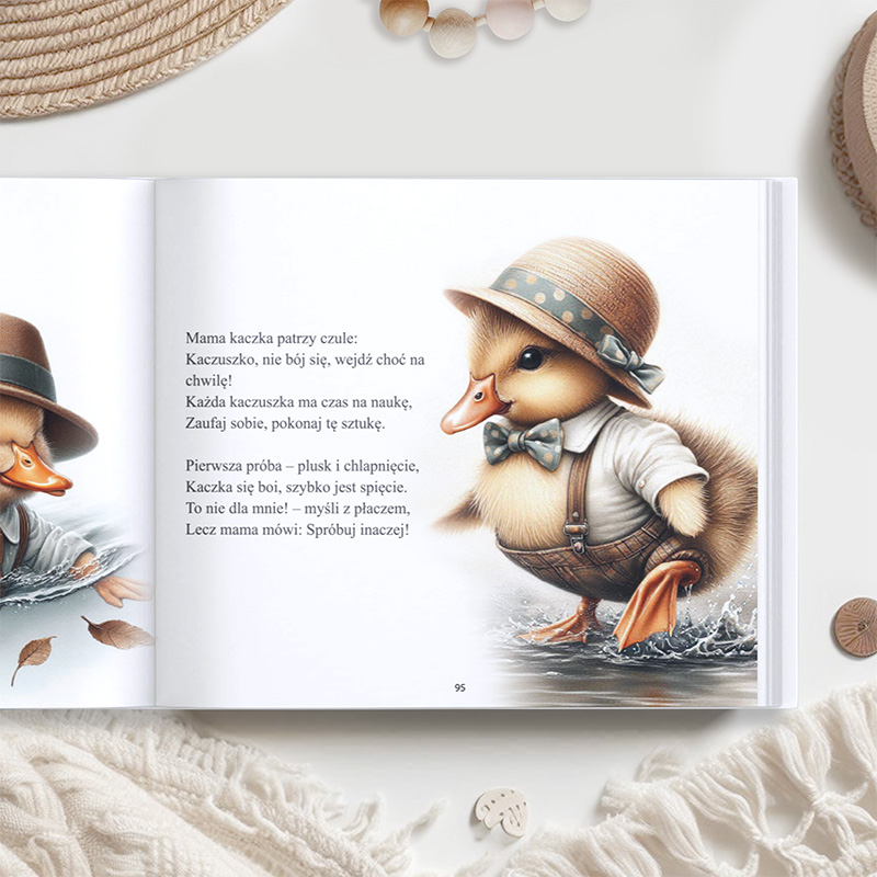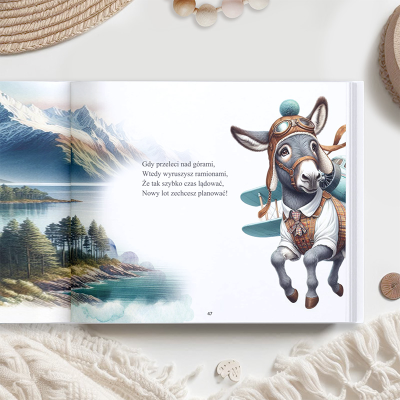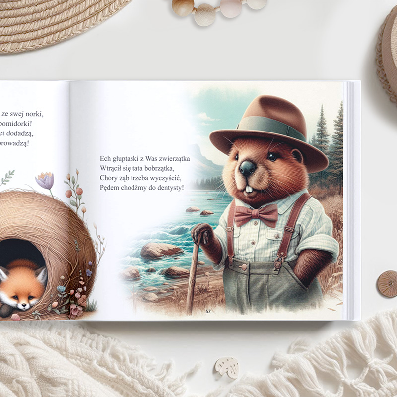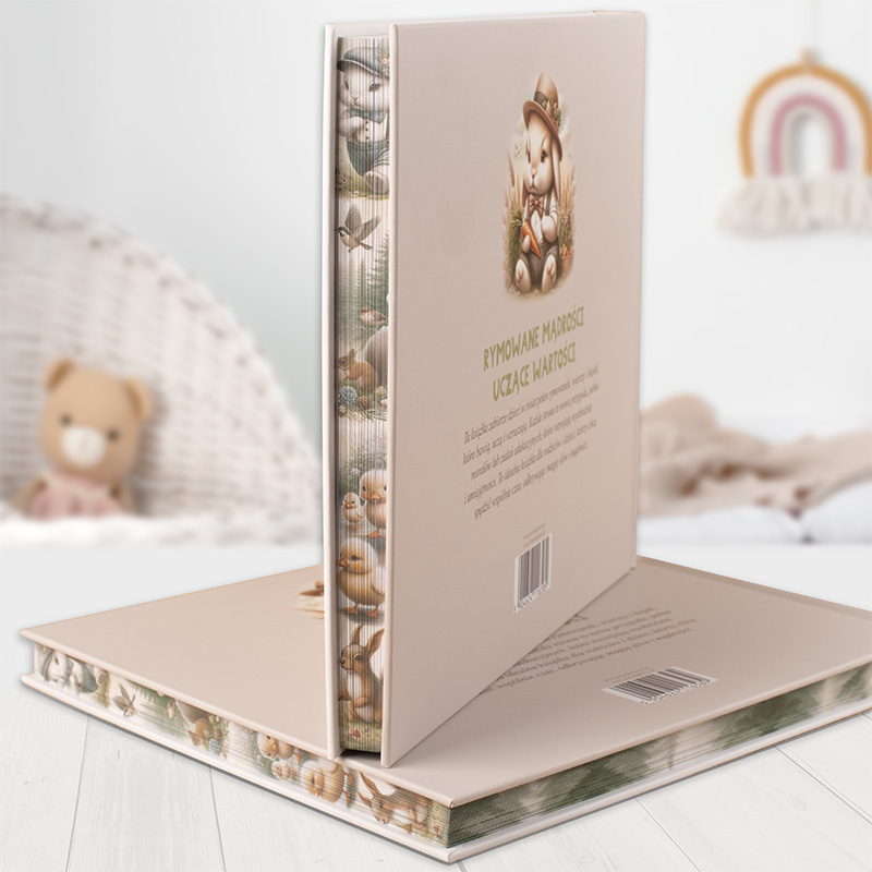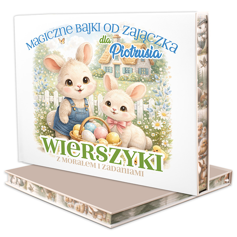 Książka została przygotowana z myślą o dzieciach, które uwielbiają kolorowe opowieści i rymowane wierszyki. Publikacja zawiera 10 bajek z morałem oraz 10 rymowanek, które rozwijają wyobraźnię, uczą wartości i zachęcają do wspólnego czytania. Historie zostały napisane w przystępnej formie, dzięki czemu są idealne do czytania przed snem lub podczas rodzinnych chwil z książką. Dużym atutem książki jest jej staranne wykonanie. Publikacja posiada twardą oprawę, która zapewnia trwałość i sprawia, że książka będzie mogła towarzyszyć dziecku przez długi czas. Zdobione, barwione brzegi nadają jej eleganckiego i wyjątkowego charakteru, dzięki czemu książka prezentuje się niezwykle efektownie. Na okładce znajduje się wielkanocna grafika z zajączkami oraz personalizacja z imieniem dziecka.