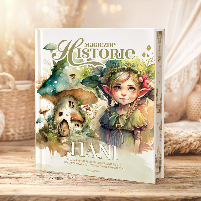 Książka "Baśnie Hansa Christiana Andersena" w personalizowanym wydaniu to doskonały wybór na prezent, który sprawdzi się przy każdej okazji. Książka z baśniami wzbogacają domową biblioteczkę oraz staje się piękną pamiątką dzięki możliwości dodania imienia dziecka i personalizowanego podpisu na okładce. Przepiękna grafika z elficą, muchomorami i innymi leśnymi elementami od razu zanurza w tajemniczy, bajkowy świat, a zielony napis "Magiczne historie" doskonale komponuje się z całością grafiki na okładce. Pod personalizacją znajduje się przepiękny cytat: