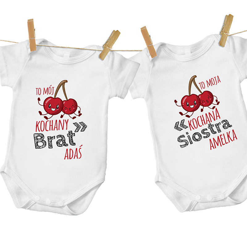 Jeśli szukasz pomysłowego prezentu dla rodzeństwa lub bliźniaków, sięgnij po urocze bodziaki! Spraw, aby maluchy poczuły się wyjątkowo, a co najważniejsze komfortowo. Fason nie krępuje ruchów i świetnie wygląda. To propozycja zupełnie inna niż wszystkie! Wyjątkowa grafika i napisy czynią ten komplet oryginalnym wyborem. Wybierz idealny rozmiar dla maluchów i już dziś podaruj im ten wyjątkowy prezent!