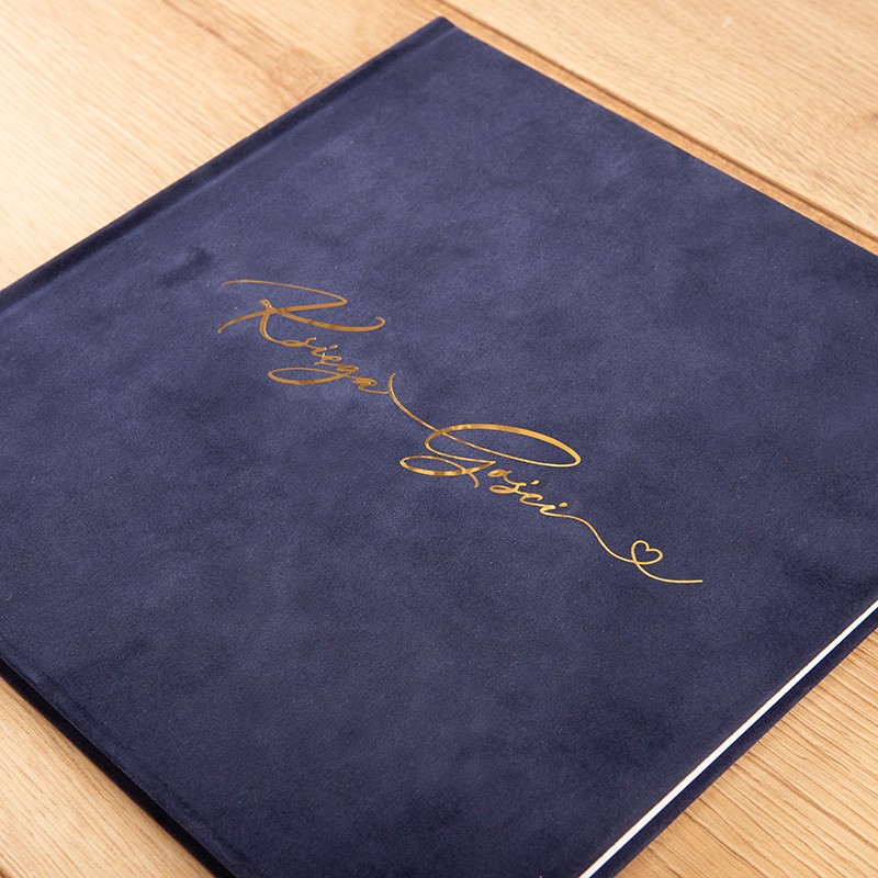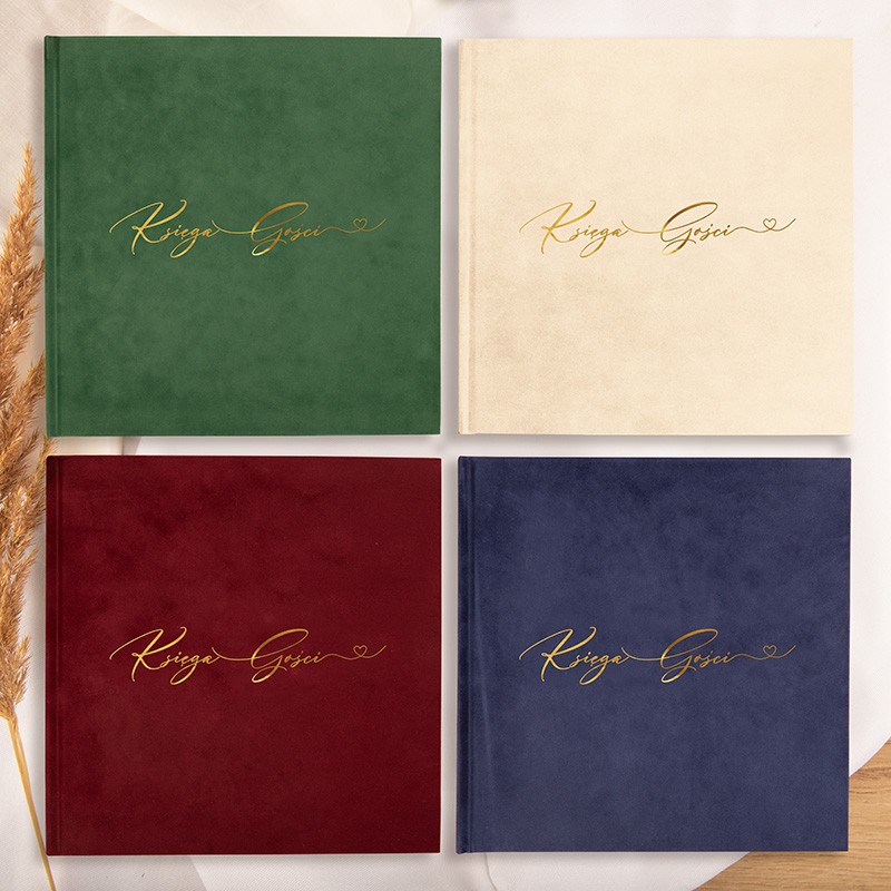 Przepiękna, subtelna i pamiątkowa — nasza księga gości to must-have, jeśli chcesz być na czasie z najnowszymi trendami imprezowymi. Obita w twardą okładkę, wykończoną aksamitnie miękkim welurem, dostępnym w kilku różnych kolorach, ta księga będzie idealnie dopasowana do Twoich preferencji. Dodatkowo, złoty napis na okładce, ozdobiony delikatnym serduszkiem, nadaje całości wyjątkowego uroku i zachęca do pamiątkowych wpisów.
