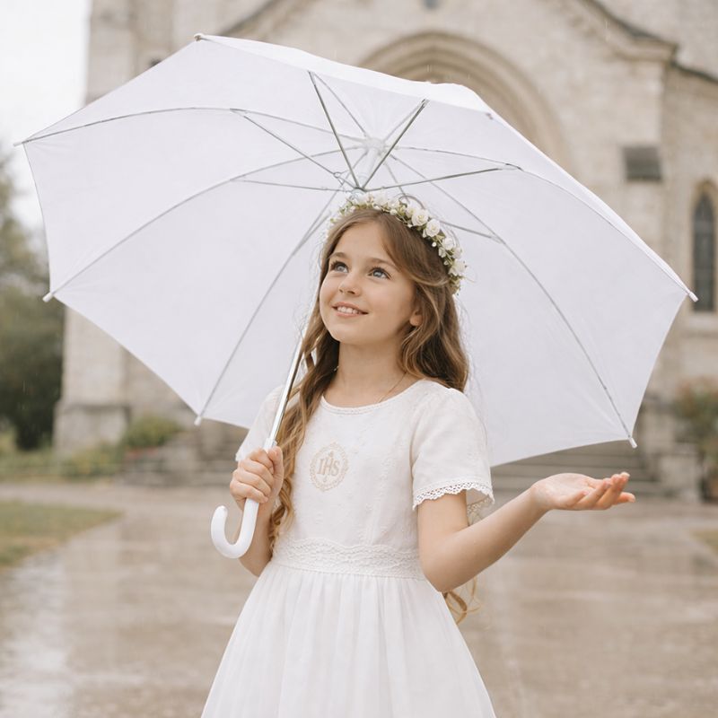 Parasolka posiada wygodny mechanizm automatycznego otwierania. Duża średnica zapewnia skuteczną ochronę przed deszczem czy słońcem. Klasyczny design sprawia, że pasuje zarówno dla dziewczynki, jak i chłopca. Biała parasolka komunijna to idealne rozwiązanie na niepewną pogodę w dniu uroczystości. Sprawdzi się podczas drogi do kościoła, sesji zdjęciowej czy przyjęcia, chroniąc przed deszczem i jednocześnie stanowiąc estetyczny element stylizacji komunijnej. Parasolka świetnie sprawdzi się również podczas całego "Białego Tygodnia".