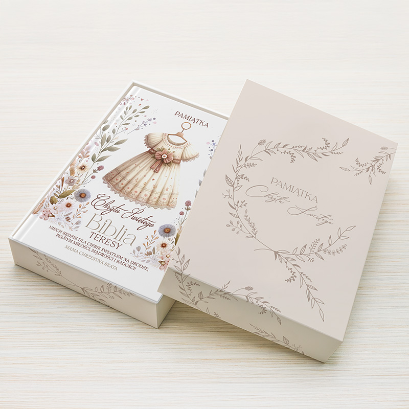 Zobacz także nasze personalizowane Biblie na Chrzest – razem z pudełkiem stworzą wyjątkowy zestaw prezentowy na tę ważną uroczystość.