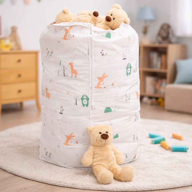Ozdobny worek na zabawki z grafiką uroczych zwierzątek. Idealnie sprawdzi się jako dekoracja w pokoju zarówno chłopca, jak i dziewczynki. Pojemnik pozwoli przede wszystkim zachować porządek w pokoju dziecka. Dzięki temu możecie zorganizować funkcjonalną przestrzeń w pomieszczeniu. Dekoracyjny worek na zabawki sprawdzi się również jako prezent na Dzień Dziecka, czy upominek na urodzinki i imieninki.