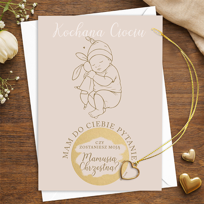 Zaproszenie bliskiej osoby do pełnienia roli Mamy Chrzestnej to znaczący moment, który niesie ze sobą zarówno duchowe znaczenie, jak i głębokie zaufanie, mając na celu stworzenie trwałej relacji między chrzestną a dzieckiem. Aby uczynić tę chwilę niezapomnianą, nasza zdrapka "Czy zostaniesz moją Mamusią Chrzestną?" oferuje unikalny sposób na zadanie tego ważnego pytania. Idealnie łączy ona elementy niespodzianki z osobistym przesłaniem, czyniąc to zaproszenie wyjątkowo emocjonalnym i pamiętnym doświadczeniem.