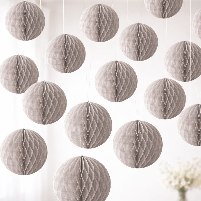 Zestaw zawiera 20 sztuk kul bibułowych w mixie kolorów i rozmiarów, wysyłanych losowo. Kule posiadają trójwymiarowe zdobienia wykonane na wzór plastra miodu, dzięki czemu prezentują się lekko i bardzo dekoracyjnie. Wykonane z bibuły, są lekkie, łatwe do rozwieszenia i dają wiele możliwości aranżacyjnych. Zróżnicowanie kolorów i wielkości pozwala stworzyć dynamiczną, spójną kompozycję bez konieczności samodzielnego dobierania elementów.