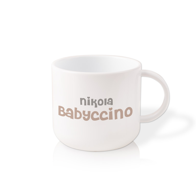Wykonany z trwałego tworzywa kubeczek jest odporny na upadki i wygodny w użytkowaniu. Personalizacja imieniem oraz modny napis „babyccino” nadają mu wyjątkowego, dziecięcego charakteru. Prosta forma i wygodne ucho zapewniają komfort zarówno w domu, jak i poza nim. Zastanawiasz się co dokładnie oznacza babyccino? Babyccino to dziecięca wersja cappuccino - ciepłe, spienione mleko bez kawy, podawane w małych kubeczkach, które sprawia dzieciom dużo radości.