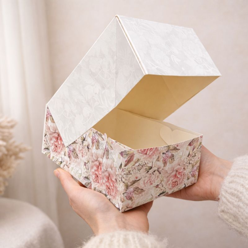 Pudełka na ciasto z kwiatowym motywem to praktyczne i estetyczne rozwiązanie na słodkie podziękowania dla gości podczas Komunii, chrztu czy urodzin dziecka. Gotowe do użycia, eleganckie i uniwersalne – idealne, aby w prosty sposób przygotować upominki, które zrobią wrażenie.
